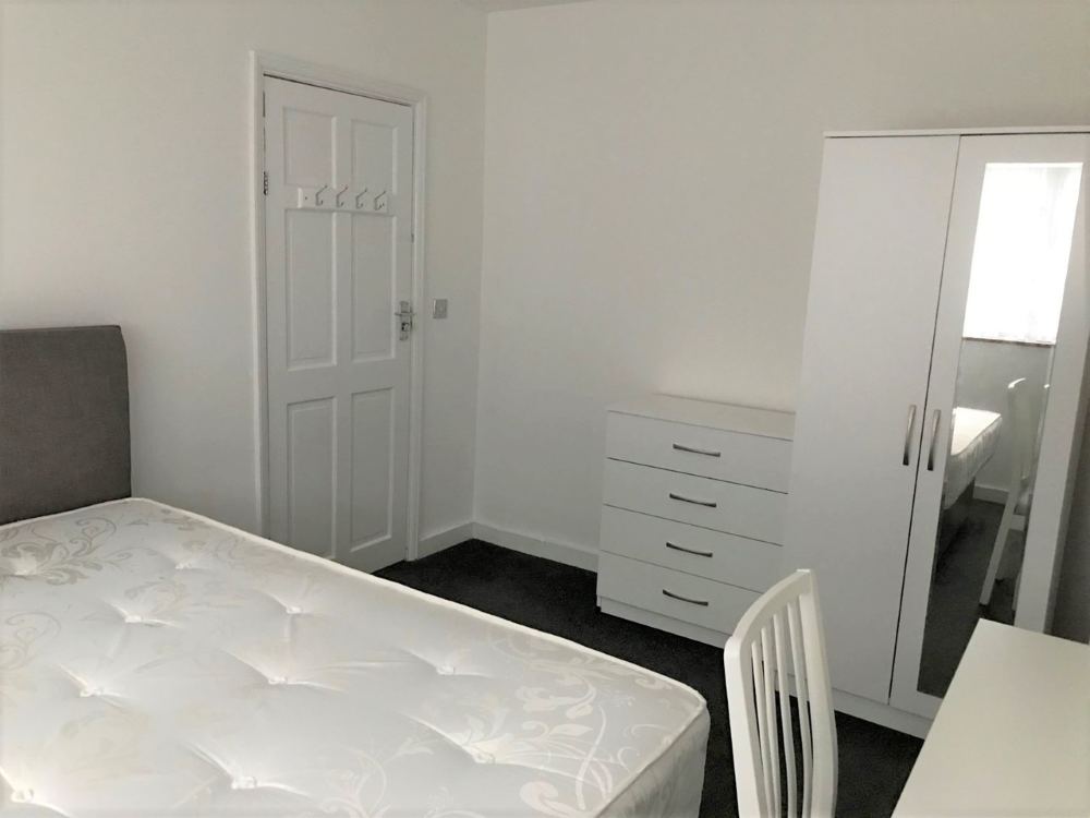 Each bedroom comes furnished with a wardrobe and chest of drawers, desk and chair, and a bed and mattress.